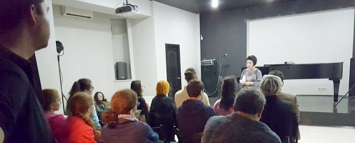 Арт-директор Музея кино Катя Бочавар провела экскурсию для участников вечера по залам галереи, где проходит выставка "Театр или нет?", затем рассказала о концепции нового проекта "Не стреляйте в пианиста!". Фестиваль возник в связи с возрождением интереса к фильмам «немого» периода, показы которых в нынешнем веке идут в сопровождении традиционных таперов.