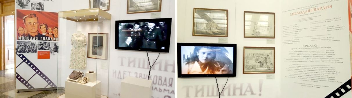 В общей сложности, в экспозиции «Молодая гвардия» представлено более 20 экспонатов из фондов Музея кино, связанных с созданием в 1948 году фильма Сергея Герасимова.