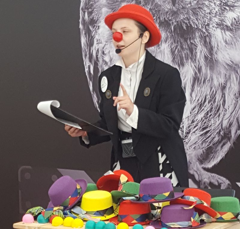 Клоун Киноша – выпускница государственного училища циркового и эстрадного искусства им. М.Н.Румянцева Лера ПИВНЕНКО: «Мне посчастливилось постигать нелегкое мастерство клоуна у Льва Георгиевича Усачева - клоуна, жонглера, акробата, и просто замечательного человека. Именно он так увлекательно рассказывал о великих артистах, показывал нам записи их реприз, вдохновлял историями их и своей собственной творческой жизни! Поэтому я с большим желанием веду лекции-игры о кинокомиках немого кино и любимых с детства советских актерах. Так я могу передать современным детям свою любовь к этим личностям.