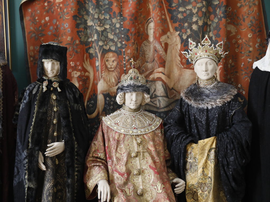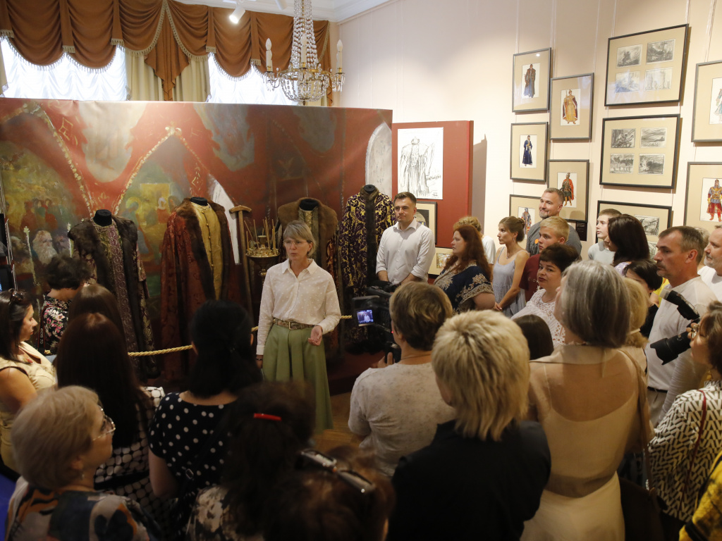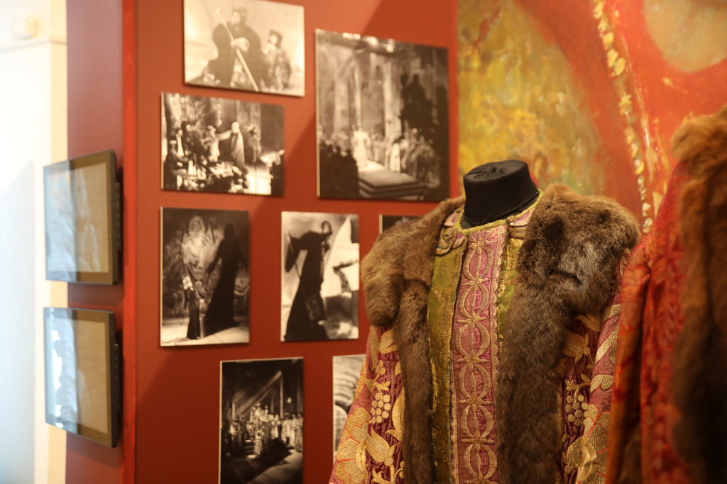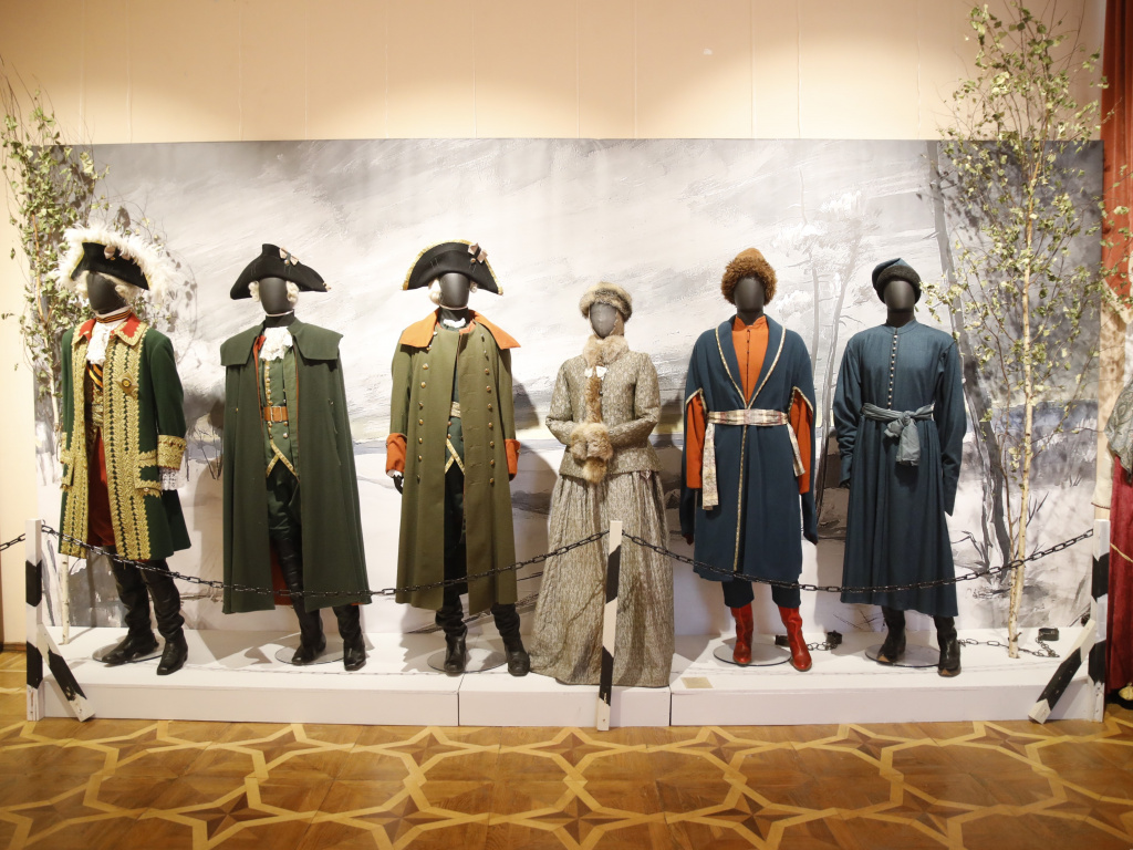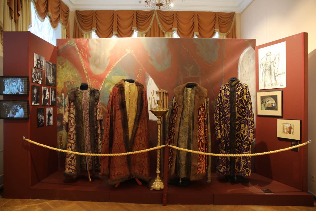 Среди предметов на выставке представлены костюмные комплексы из фильмов «Иван Грозный» (1944–1945), «Юность Петра» (1980), «Русский бунт» (1999), а также эскизы декораций и костюмов к перечисленным фильмам, фотографии съёмочного процесса и другие материалы из фондов Музея кино.