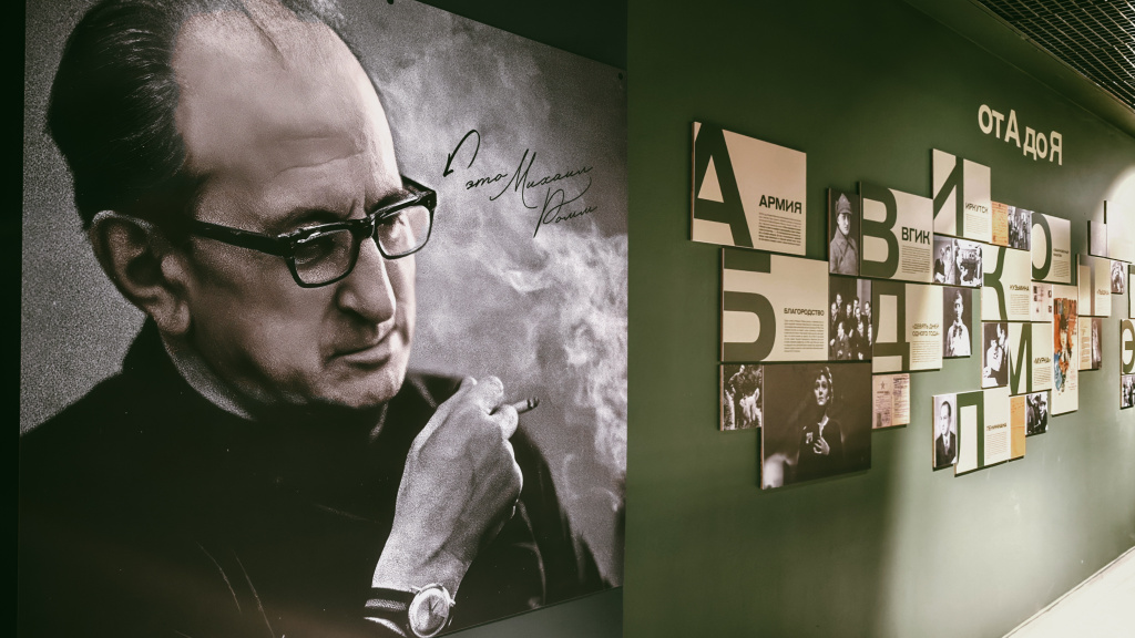 Сердцем выставки станет блок «От А до Я» — азбука жизни Михаила Ильича, где важнейшие фильмы, люди и события его биографии распределены по буквам алфавита. У Ромма, например, «К — Кузьмина. Первая и единственная жена…» или «И — Иркутск. Город, в котором в 1901 году родился Ромм…». Этот подход позволяет раскрыть режиссера с разных сторон. Посетители узнают Ромма как живого человека, а не как имя в титрах фильма. Гости музея смогут увидеть и личные вещи режиссера, и памятные предметы, и «карту учеников» — инсталляцию, наглядно демонстрирующую размах Михаила Ильича и степень его влияния на отечественную киноиндустрию через приемников как лично, так и через воспитанников.