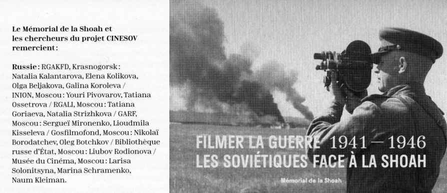 Мемориал Шоа в Париже, музей, посвященный истории Холокоста, выпустил каталог выставки «Снимая войну: советские кинооператоры и Холокост (1941 — 1946)». Отдельную благодарность организаторы выставки выразили своим российским коллегам, в том числе Музею кино.