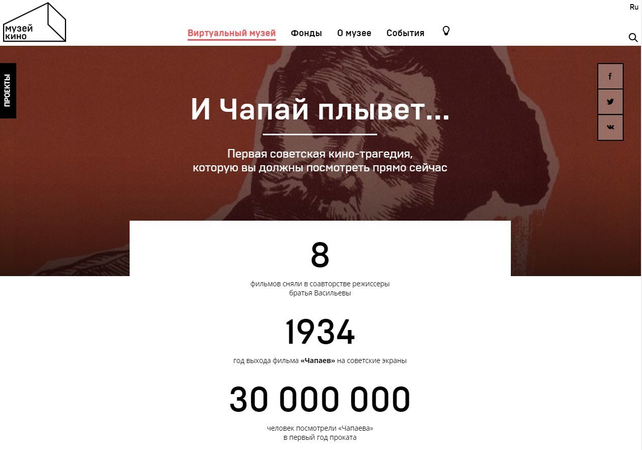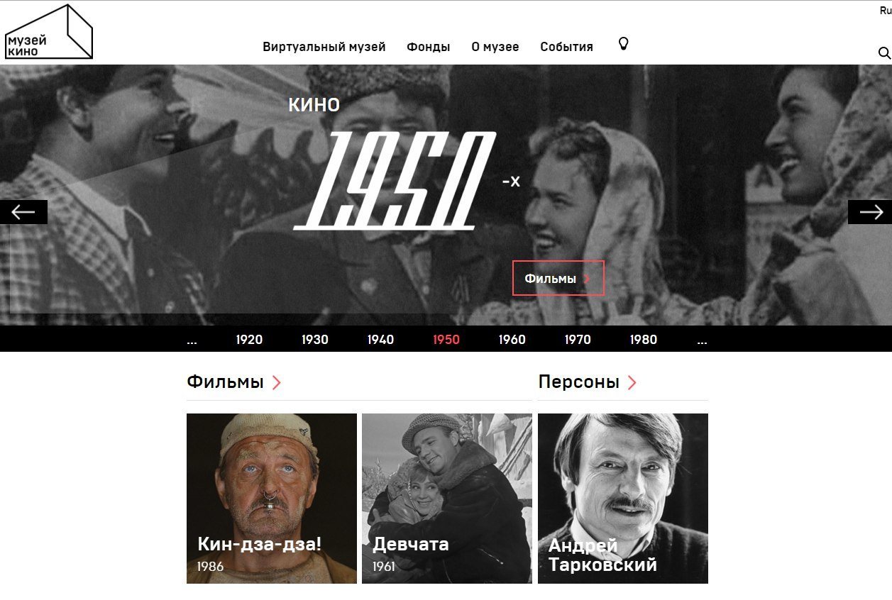 museikino.ru — это полное и всеобъемлющее виртуальное воплощение Музея кино. Пока идёт капитальный ремонт 36-го павильона на ВДНХ, где будет расположено собственное экспозиционное пространство, сайт становится не просто «онлайн-представительством», а полноформатным экспозиционным центром.