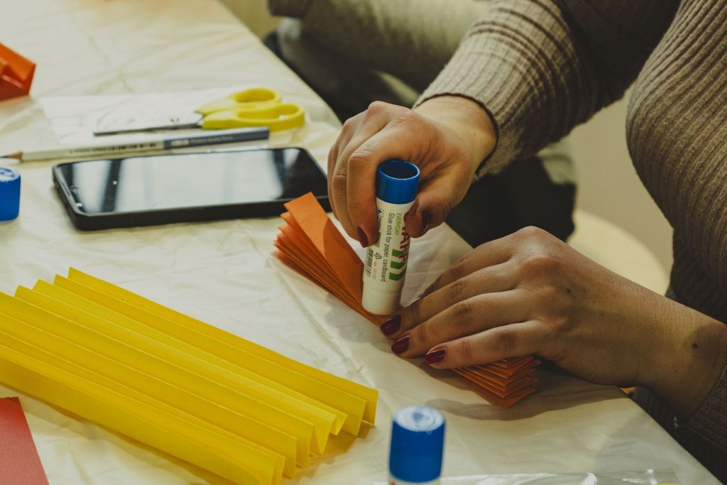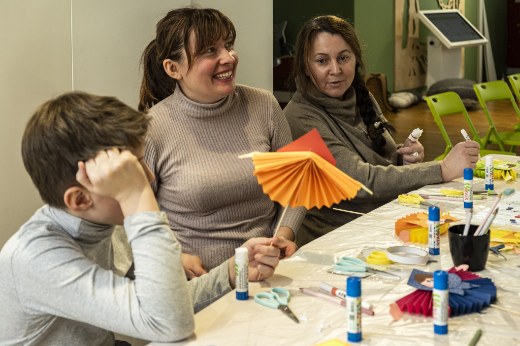 Секретарь руководителя Музея кино Анастасия Прокофьева провела сразу два мастер-класса. На занятии «Провожаем зиму с Солнцем» дети и родители также работали в технике оригами, создавая масленичные образы и солнечные символы.